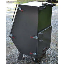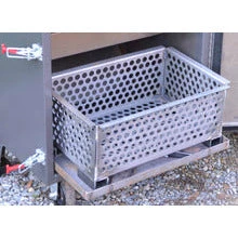 Rear firebox door with sliding vent for temperature control. (Optional adapter plate can be ordered if you prefer to use an electronic temp controller, however we highly recommend you try smoking on your 270 without a controller first — the 270 Smoker performs best without one!) Charcoal basket holds 15 lbs of lump charcoal with typical burn time of 15 hrs+