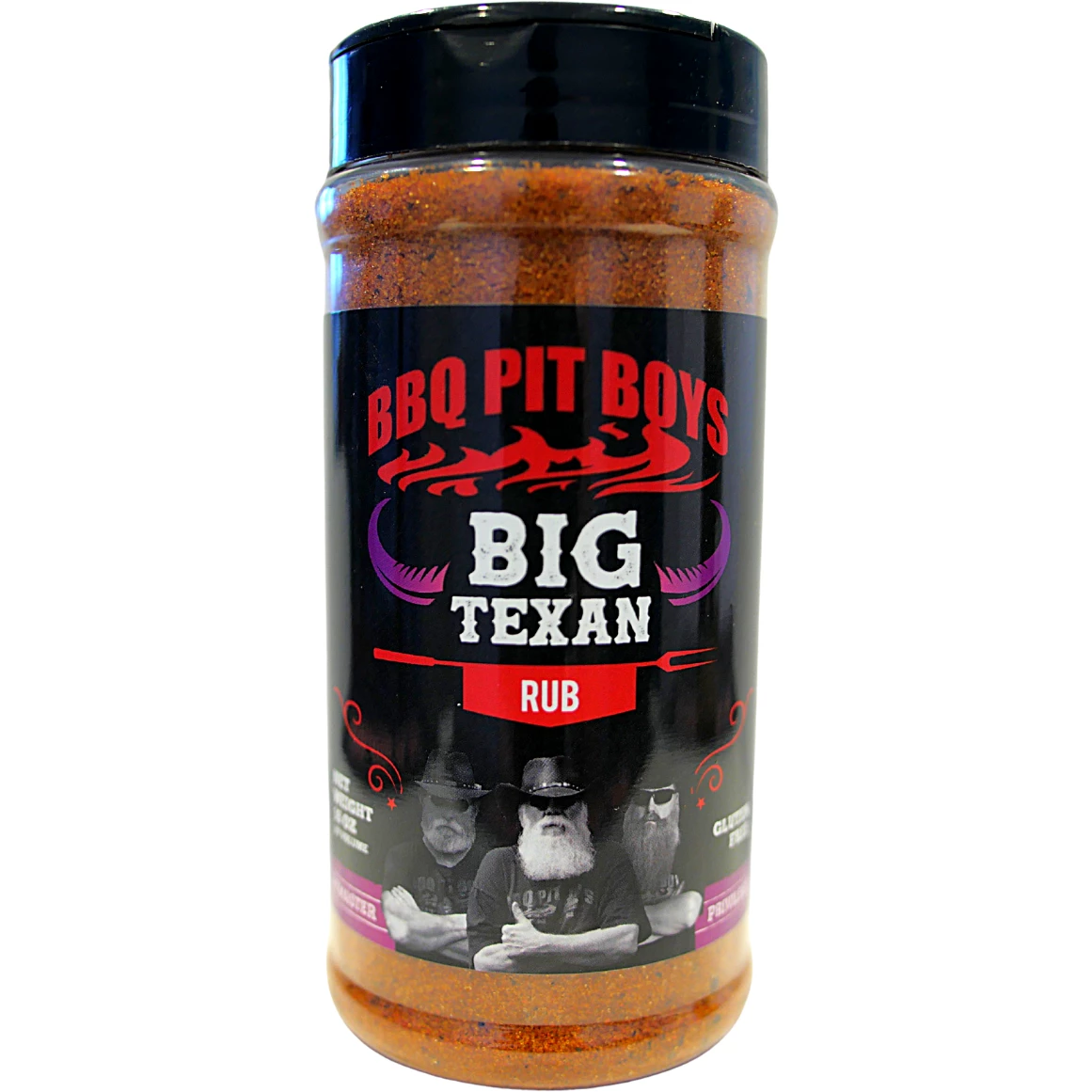 - Elevate your BBQ experience with the bold and savory flavors of BBQ Pit Boys Big Texan Rub. This 16 oz seasoning is perfect for grilling, smoking, and roasting, delivering a rich taste that enhances any meat or vegetable.
