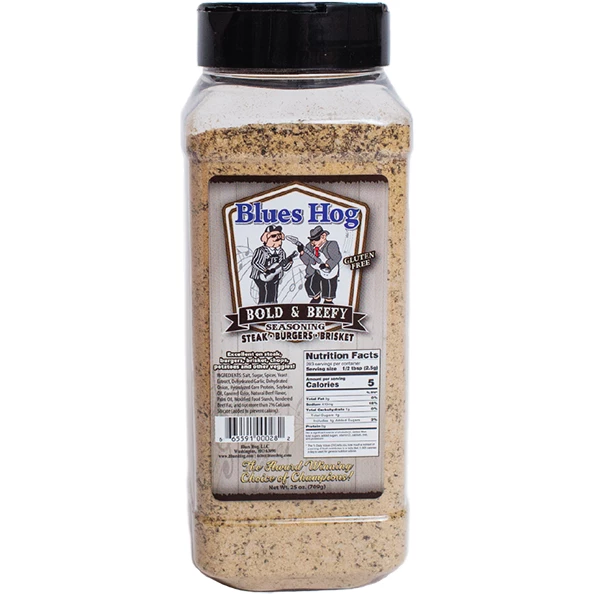 - Order now and enjoy fast, reliable shipping. Blues Hog Bold & Beefy Seasoning is available in a convenient 25 oz size, ensuring you have plenty to season all your favorite dishes.