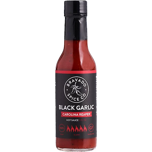 - Bravado Spice Co. Black Garlic Carolina Reaper Hot Sauce combines the intense heat of the Carolina Reaper with the rich, savory flavor of black garlic for a unique culinary experience.