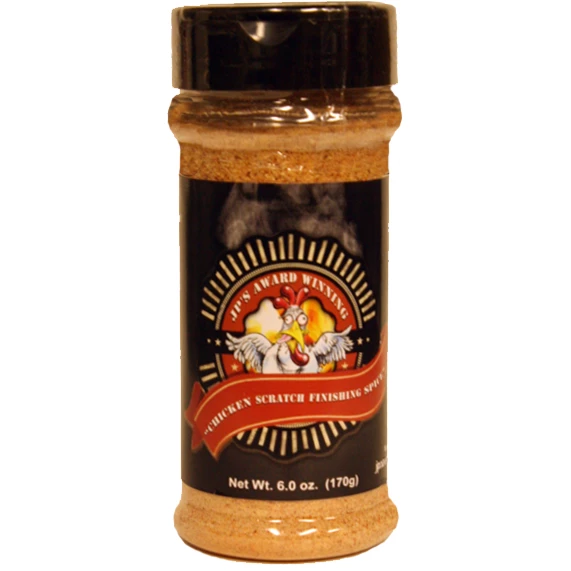 - Enhance your BBQ dishes with JP Custom Smoke Chicken Scratch Finishing Spice. This 6 oz seasoning blend is crafted to add a bold, smoky flavor to chicken, meats, and more.