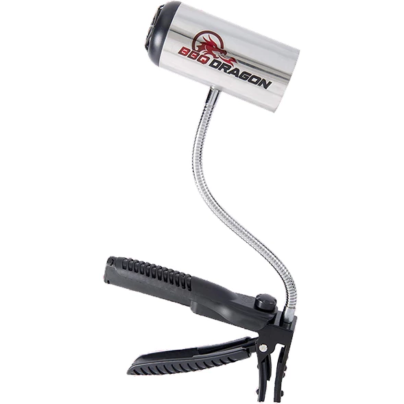The BBQ Dragon fan is a fire-starting tool that starts charcoal faster than a chimney without using lighter fluid, controls the heat of grills and smokers, revives smouldering fires, and heats ceramic cookers to pizza-cooking temps in just minutes. It works by blowing large amounts of low-velocity, cool air at fires, providing them with more oxygen so they burn hotter and faster. It’s cordless, hands-free, and portable so you can use it tailgating and camping, or at the beach. It works for grills, smokers, fire pits, fireplaces, wood stoves, and more.