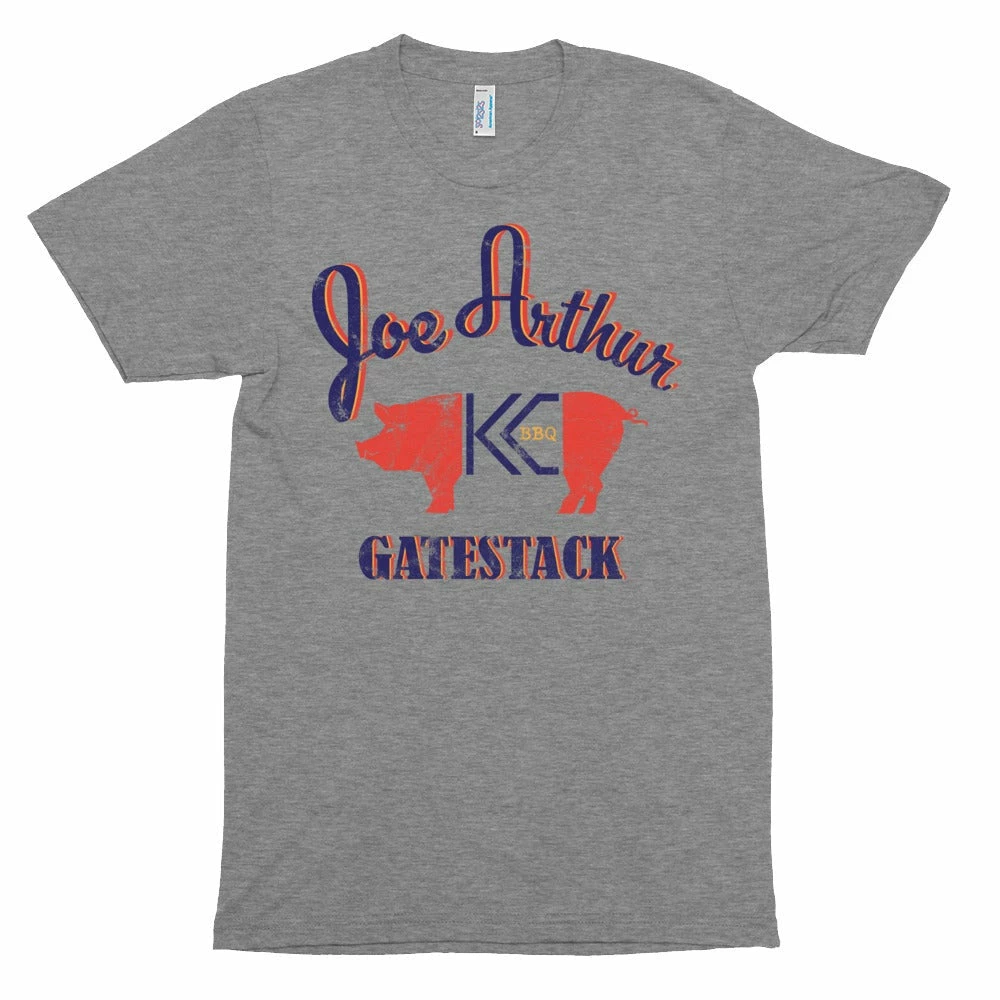 Three KC Joearthur Gatestack Charcoal Blue, Red, Gold Logo T-Shirt | BBQ Apparel & Merchandise