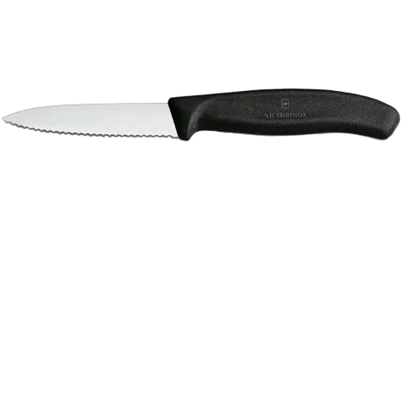 - The Victorinox Fibrox Handle Serrated 3 1/4″ Paring Knife is a must-have for any kitchen. Its serrated edge ensures clean cuts through tough skins and delicate foods alike.